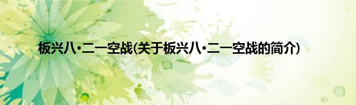 本文关于板兴八·二一空战的简介就讲解完毕,希望对大家有所帮助。