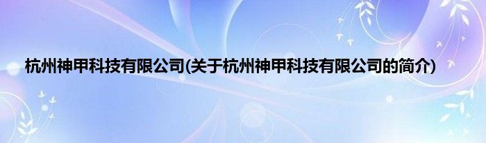 本文关于杭州神甲科技有限公司的简介就讲解完毕,希望对大家有所帮助。