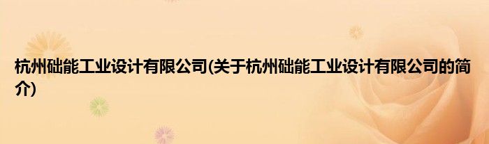 本文关于杭州础能工业设计有限公司的简介就讲解完毕,希望对大家有所帮助。