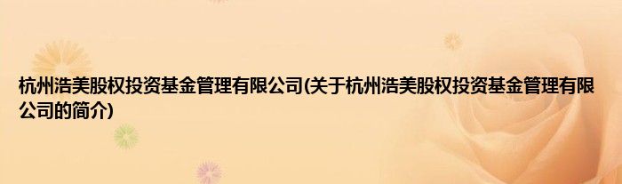 本文关于杭州浩美股权投资基金管理有限公司的简介就讲解完毕,希望对大家有所帮助。