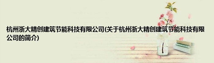 本文关于杭州浙大精创建筑节能科技有限公司的简介就讲解完毕,希望对大家有所帮助。