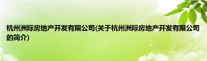 本文关于杭州洲际房地产开发有限公司的简介就讲解完毕,希望对大家有所帮助。