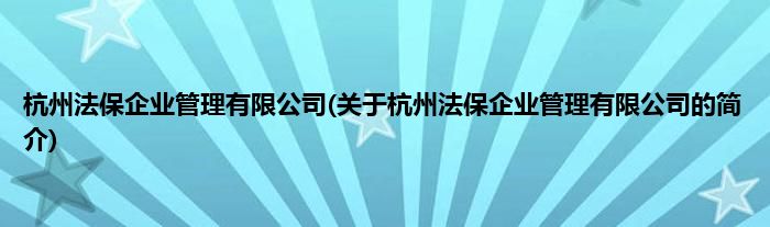 本文关于杭州法保企业管理有限公司的简介就讲解完毕,希望对大家有所帮助。