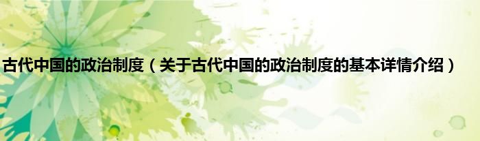 本文关于古代中国的政治制度的基本详情介绍就讲解完毕,希望对大家有所帮助。