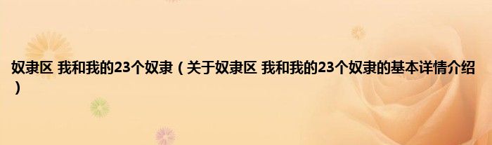 奴隶区 我和我的23个奴隶(关于奴隶区 我和我的23个奴隶的基本详情介绍)