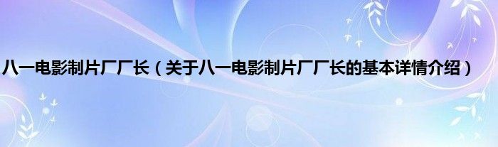 本文关于八一电影制片厂厂长的基本详情介绍就讲解完毕,希望对大家有所帮助。