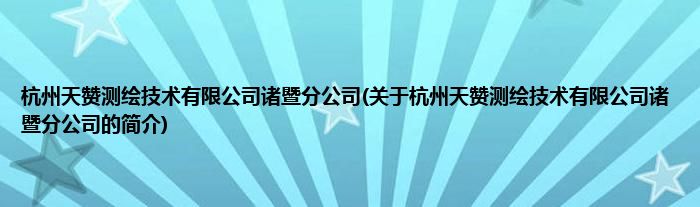 杭州天赞测绘技术有限公司诸暨分公司(关于杭州天赞测绘技术有限公司诸暨分公司的简介)