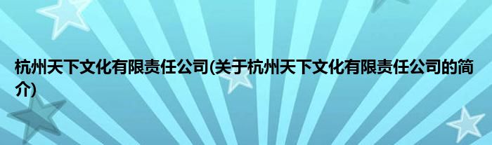 本文关于杭州天下文化有限责任公司的简介就讲解完毕,希望对大家有所帮助。
