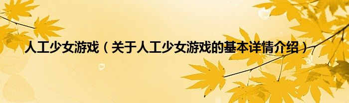 人工少女游戏(关于人工少女游戏的基本详情介绍)