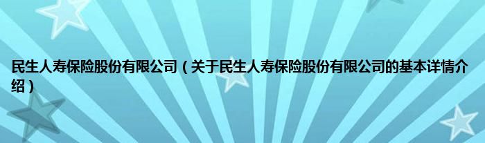 本文关于民生人寿保险股份有限公司的基本详情介绍就讲解完毕,希望对大家有所帮助。