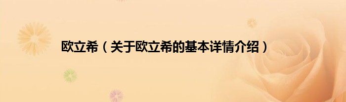 本文关于欧立希的基本详情介绍就讲解完毕,希望对大家有所帮助。