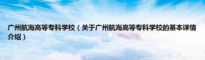 本文关于广州航海高等专科学校的基本详情介绍就讲解完毕,希望对大家有所帮助。