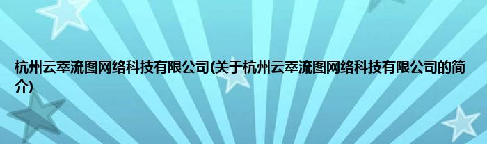 大家好,杭州云萃流图网络科技有限公司,关于杭州云萃流图网络科技有限公司的简介很多人还不知道,现在让我们一起来看看吧!