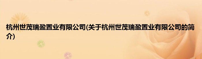 本文关于杭州世茂瑞盈置业有限公司的简介就讲解完毕,希望对大家有所帮助。