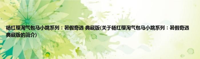 大家好,杨红樱淘气包马小跳系列:暑假奇遇 典藏版,关于杨红樱淘气包马小跳系列:暑假奇遇 典藏版的简介很多人还不知道,现在让我们一起来看看吧!