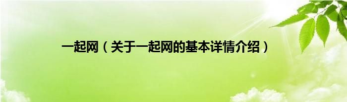 本文关于一起网的基本详情介绍就讲解完毕,希望对大家有所帮助。