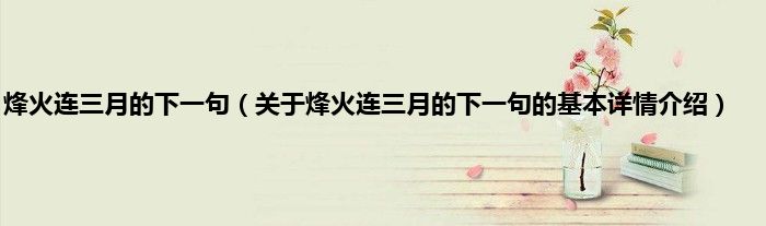 本文关于烽火连三月的下一句的基本详情介绍就讲解完毕,希望对大家有所帮助。