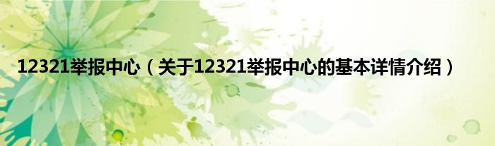 本文关于12321举报中心的基本详情介绍就讲解完毕,希望对大家有所帮助。
