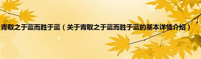 青取之于蓝而胜于蓝(关于青取之于蓝而胜于蓝的基本详情介绍)