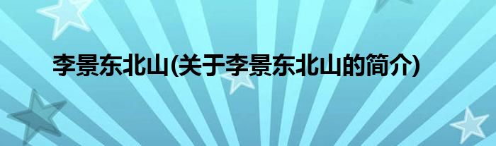 大家好,李景东北山,关于李景东北山的简介很多人还不知道,现在让我们一起来看看吧!