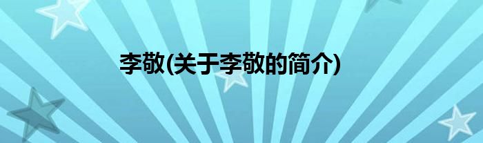 本文关于李敬的简介就讲解完毕,希望对大家有所帮助。
