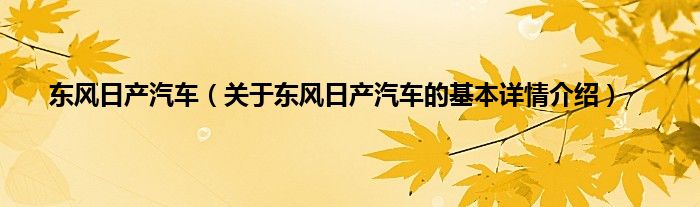 本文关于东风日产汽车的基本详情介绍就讲解完毕,希望对大家有所帮助。