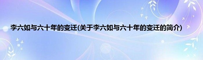 本文关于李六如与六十年的变迁的简介就讲解完毕,希望对大家有所帮助。