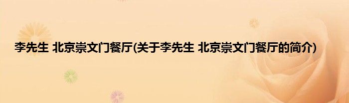 本文关于李先生 北京崇文门餐厅的简介就讲解完毕,希望对大家有所帮助。