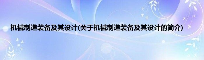 大家好,机械制造装备及其设计,关于机械制造装备及其设计的简介很多人还不知道,现在让我们一起来看看吧!