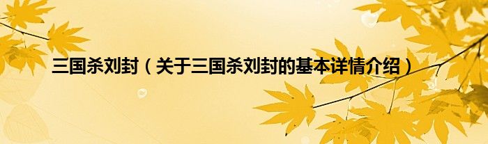 本文关于三国杀刘封的基本详情介绍就讲解完毕,希望对大家有所帮助。