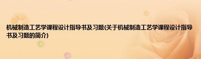 大家好,机械制造工艺学课程设计指导书及习题,关于机械制造工艺学课程设计指导书及习题的简介很多人还不知道,现在让我们一起来看看吧!