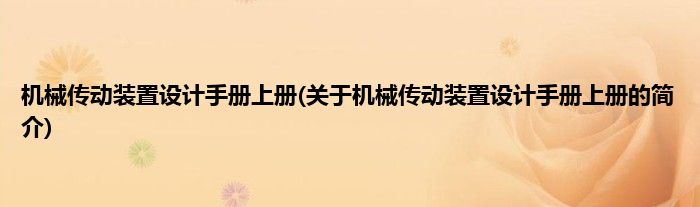 本文关于机械传动装置设计手册上册的简介就讲解完毕,希望对大家有所帮助。