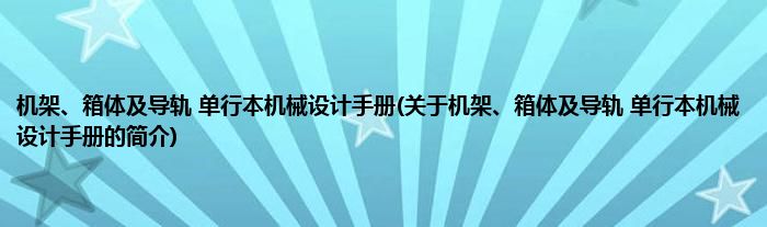 本文关于机架、箱体及导轨 单行本机械设计手册的简介就讲解完毕,希望对大家有所帮助。