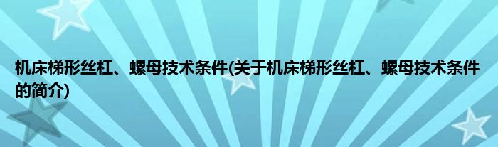 本文关于机床梯形丝杠、螺母技术条件的简介就讲解完毕,希望对大家有所帮助。
