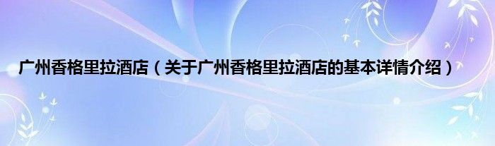 本文关于广州香格里拉酒店的基本详情介绍就讲解完毕,希望对大家有所帮助。