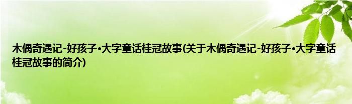 本文关于木偶奇遇记-好孩子·大字童话桂冠故事的简介就讲解完毕,希望对大家有所帮助。