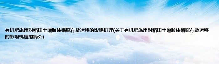 有机肥施用对稻田土壤胶体磷赋存及运移的影响机理(关于有机肥施用对稻田土壤胶体磷赋存及运移的影响机理的简介)