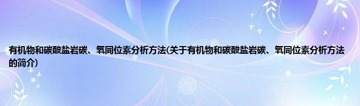 有机物和碳酸盐岩碳、氧同位素分析方法(关于有机物和碳酸盐岩碳、氧同位素分析方法的简介)