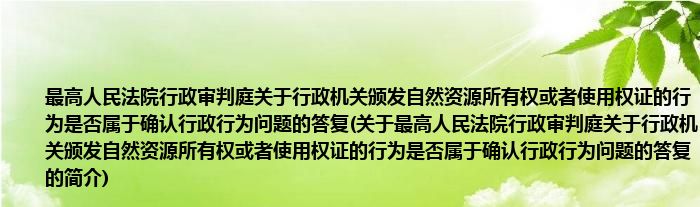 1、 《最高人民法院行政审判庭关于行政机关颁发自然资源所有权或者使用权证的行为是否属于确认行政行为问题的答复》在2005.02.24由最高人民法院行政审判庭颁布。