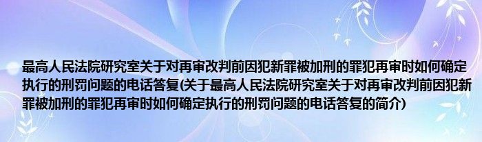 本文关于最高人民法院研究室关于对再审改判前因犯新罪被加刑的罪犯再审时如何确定执行的刑罚问题的电话答复的简介就讲解完毕,希望对大家有所帮助。