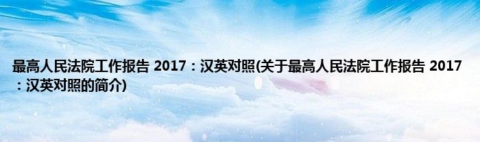 本文关于最高人民法院工作报告。2017:汉英对照的简介就讲解完毕,希望对大家有所帮助。