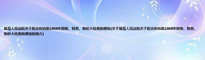 最高人民法院关于配合和协助1989年税收、财务、物价大检查的通知(关于最高人民法院关于配合和协助1989年税收、财务、物价大检查的通知的简介)