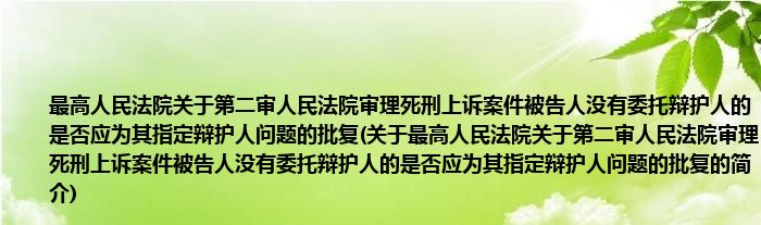 本文关于最高人民法院关于第二审人民法院审理死刑上诉案件被告人没有委托辩护人的是否应为其指定辩护人问题的批复的简介就讲解完毕,希望对大家有所帮助。