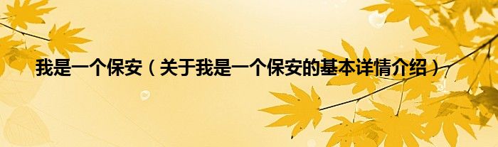 本文关于我是一个保安的基本详情介绍就讲解完毕,希望对大家有所帮助。