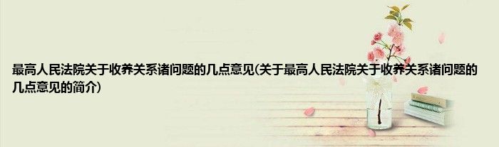 大家好,最高人民法院关于收养关系诸问题的几点意见,关于最高人民法院关于收养关系诸问题的几点意见的简介很多人还不知道,现在让我们一起来看看吧!