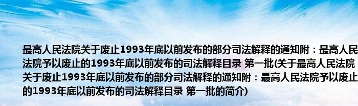 大家好,最高人民法院关于废止1993年底以前发布的部分司法解释的通知附:最高人民法院予以废止的1993年底以前发布的司法解释目录 第一批,关于最高人民法院关于废止1993年底以前发布的部分司法解释的通知附:最高人民法院予以废止的1993年底以前发布的司法解释目录 第一批的简介很多人还不知道,现在让我们一起来看看吧!