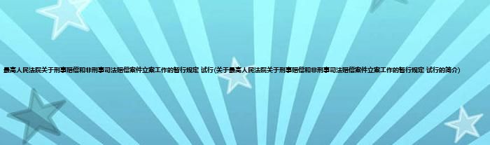大家好,最高人民法院关于刑事赔偿和非刑事司法赔偿案件立案工作的暂行规定 试行,关于最高人民法院关于刑事赔偿和非刑事司法赔偿案件立案工作的暂行规定 试行的简介很多人还不知道,现在让我们一起来看看吧!