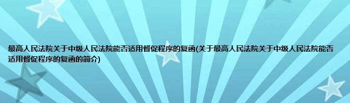 最高人民法院关于中级人民法院能否适用督促程序的复函(关于最高人民法院关于中级人民法院能否适用督促程序的复函的简介)