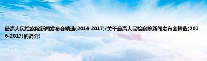 最高人民检察院新闻发布会精选(2016-2017)(关于最高人民检察院新闻发布会精选(2016-2017)的简介)