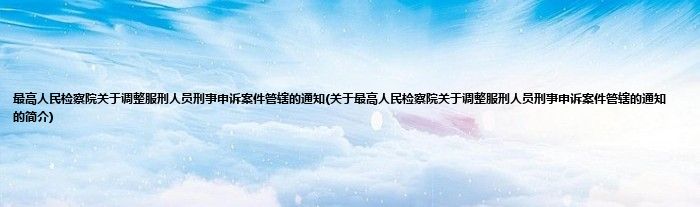 大家好,最高人民检察院关于调整服刑人员刑事申诉案件管辖的通知,关于最高人民检察院关于调整服刑人员刑事申诉案件管辖的通知的简介很多人还不知道,现在让我们一起来看看吧!